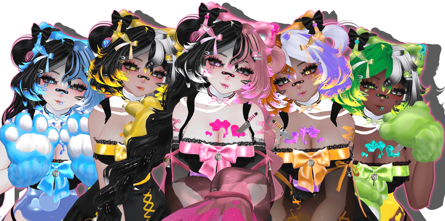 - Hair Accessories, Headband, Band aids, Whiskers, Bandages, Backpack, Sleeves, Corset Arm piercings, Light Palm edits: Whituu