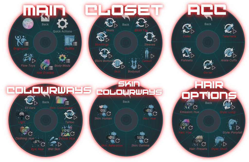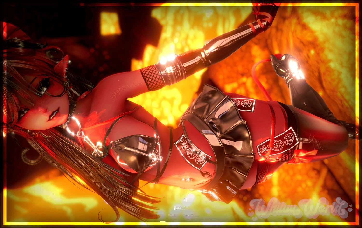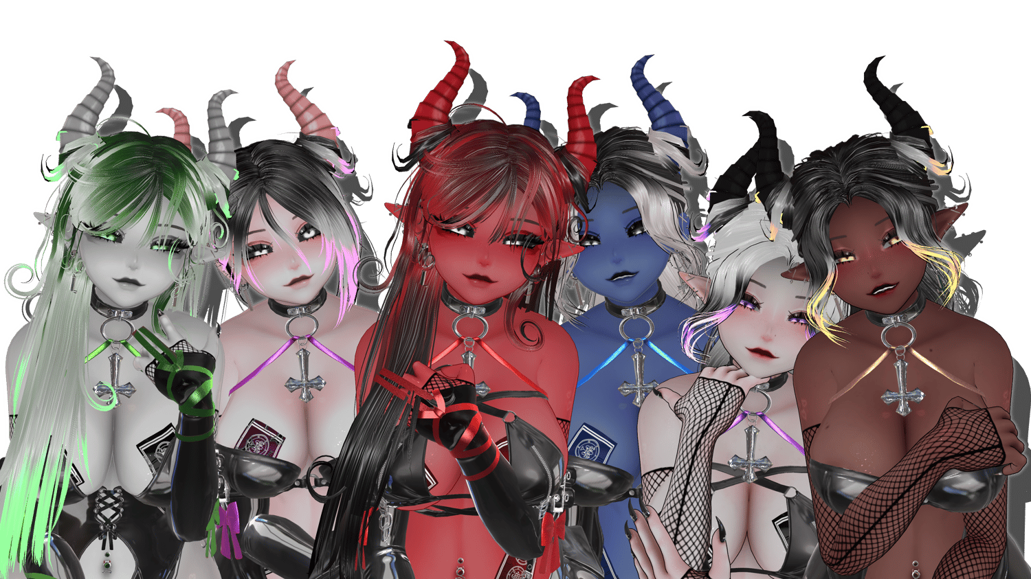 - Wrapped Hair Horns, Tail, Bikini Set, Sleeves, Catsuit, Bodysuit, Skirt, Stockings, Heels, Talismans, Ankle Cuffs, Collar, Paddle, Clamps, Whip, Nails, Belly Piercings, Light Palm edits: Whituu